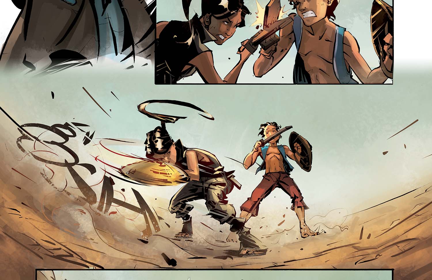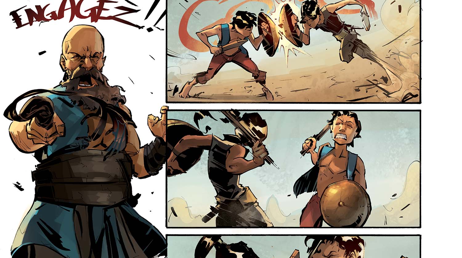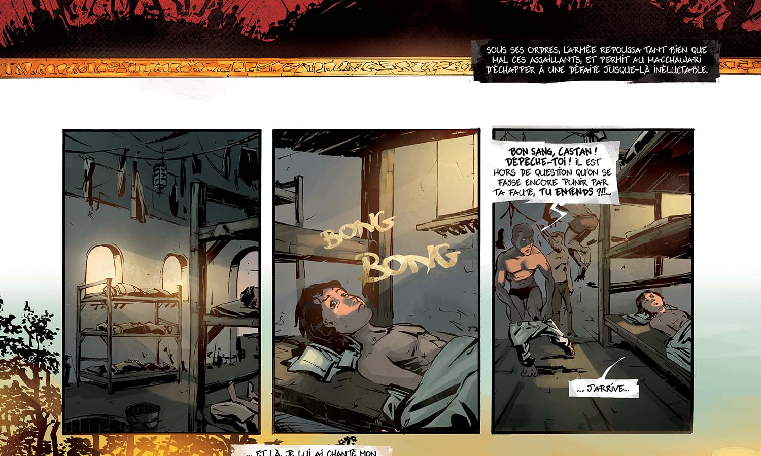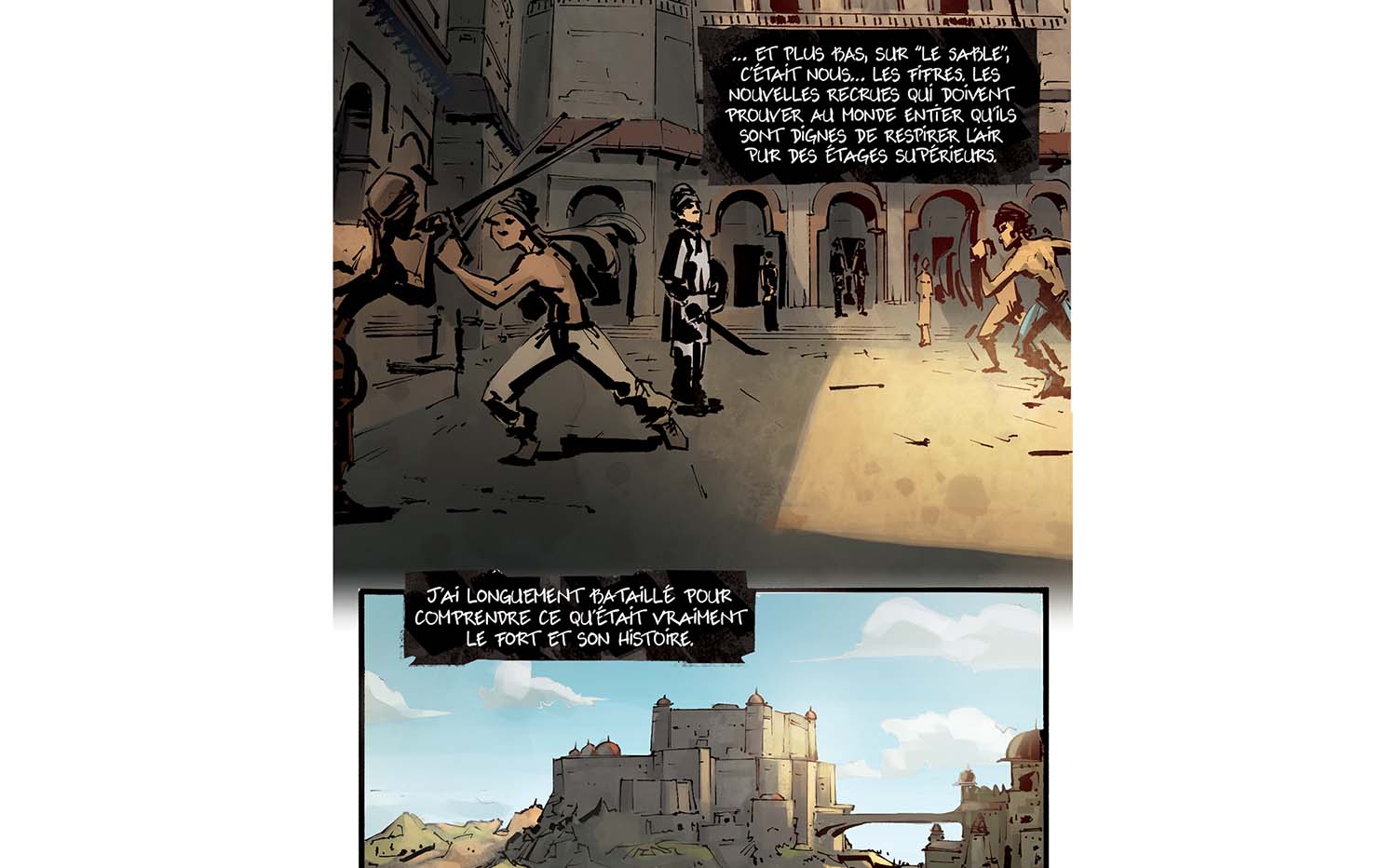 Alors, le souci : y'a clairement trop de textes dans la première partie du chapitre ! Du coup ça casse un peu le rythme de l'histoire, et c'est pas facile à lire. Ok, on a construit tout un univers et on voulait le raconter. En plus, c'est des infos super importantes pour la suite ! Alors, on aurait dû faire quoi ? Deux solutions : soit en dire moins, soit rajouter des pages. Il faut garder à l'esprit cette bonne vieille maxime qui marche bien au cinéma et en BD : "show, don't tell" : Plutôt que de dire ce qui se passe, montre-le.